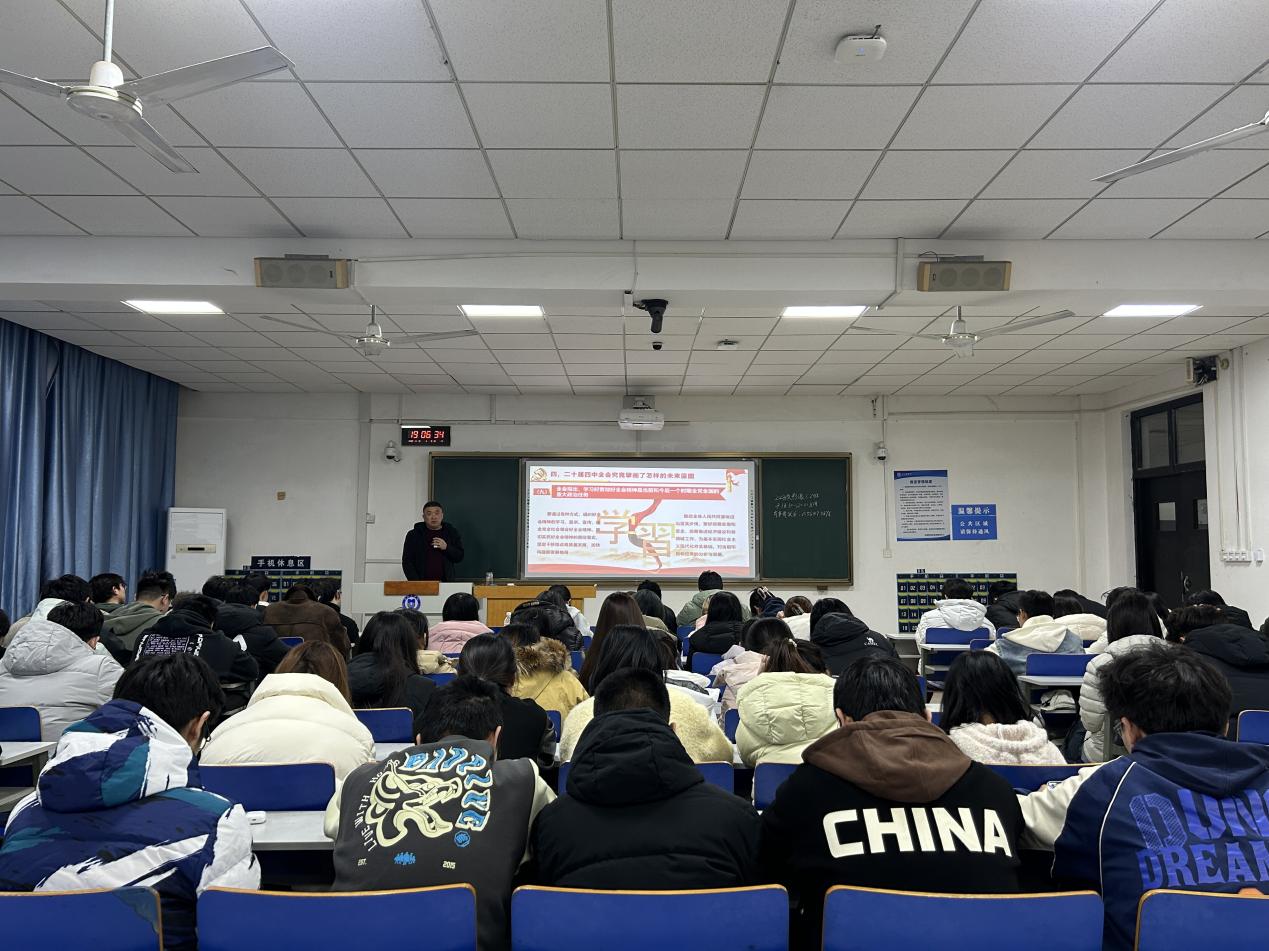 为深入推进党的二十届四中全会精神在青年学生中落地生根、入脑入心,引导广大同学自觉将思想和行动统一到党中央决策部署上来,11月19日,学院党委副书记姜涛在教学楼2004教室,以“深学笃行二十届四中全会精神 勇担‘十五五’现代化新使命”为题,为2024级全体本科学生讲授专题党课。